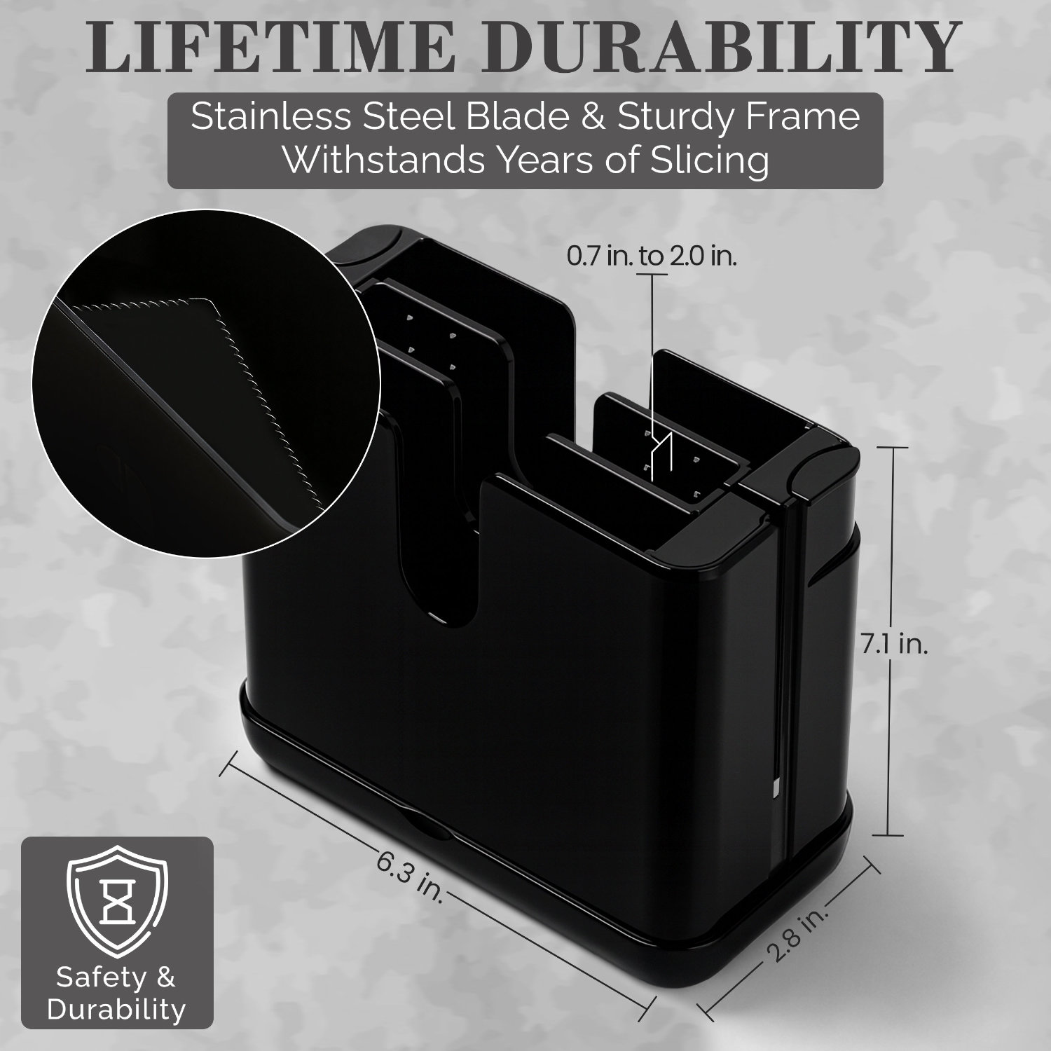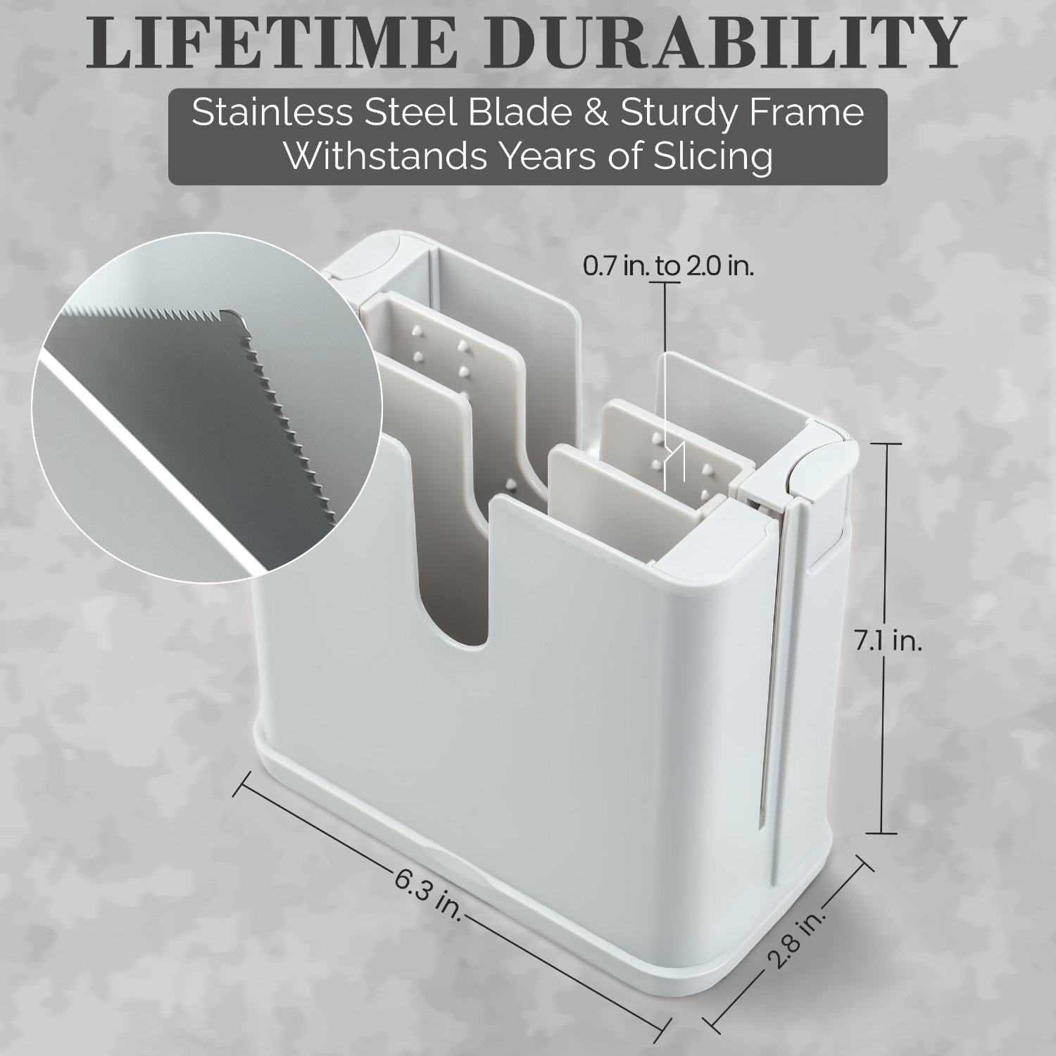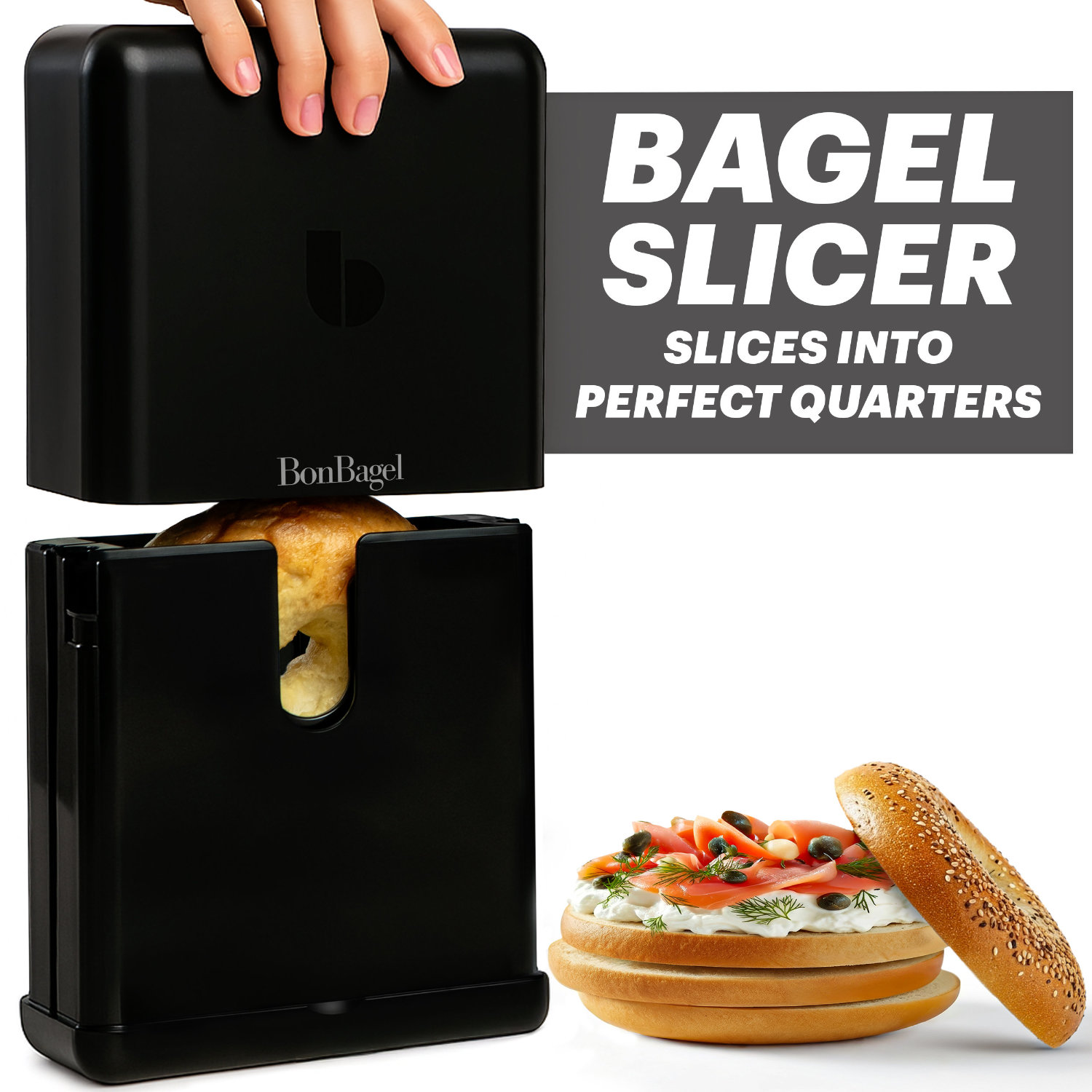 Unlike guillotine-style models that can crush or misalign bread, our slicer combines reliable centering with the option to use the built-in blade or your own kitchen knife. That flexibility means you can cut bagels into neat halves or even create four thinner slices for sandwiches and snacks. The result is clean edges without the mess or uneven cuts that often come from using a standard knife.